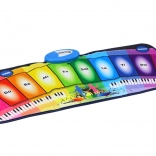 Die interaktive Musikmatte Pianinko ermöglicht es Kindern, auf der integrierten Tastatur zu spielen, die durch das Drücken von Tasten auf der Matte aktiviert wird. Diese Funktion bietet nicht nur die Möglichkeit, voreingestellte Melodien abzuspielen, sondern erlaubt auch kreative Improvisation und Experimentieren mit Klängen.
