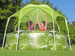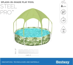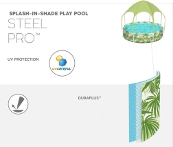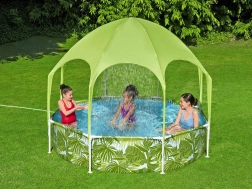 Der Bestway SPLASH-IN-SHADE Pool wurde entwickelt, um Kinder zu Bewegung und sicherem Wasserspaß im Garten zu motivieren. Die Überdachung mit integrierter Sprühdüse bietet Schatten und Abkühlung; einfach eine Gartenschlauch anschließen und der Spaß kann beginnen. Die farbenfrohe Sommergrafik begeistert kleine Schwimmer und die stabile Konstruktion sorgt den ganzen Sommer über für Standfestigkeit.