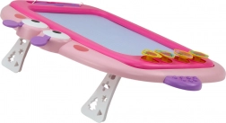 Im Lieferumfang sind 4 Stempel in den Formen Dreieck, Herz, Quadrat und Sechseck enthalten, die das Gestalten abwechslungsreicher machen und beim Erlernen von Formen und Mathematik helfen. Ein praktischer Griff erleichtert das Tragen und ausklappbare Stützen ermöglichen eine bequeme Nutzung auf dem Tisch.
