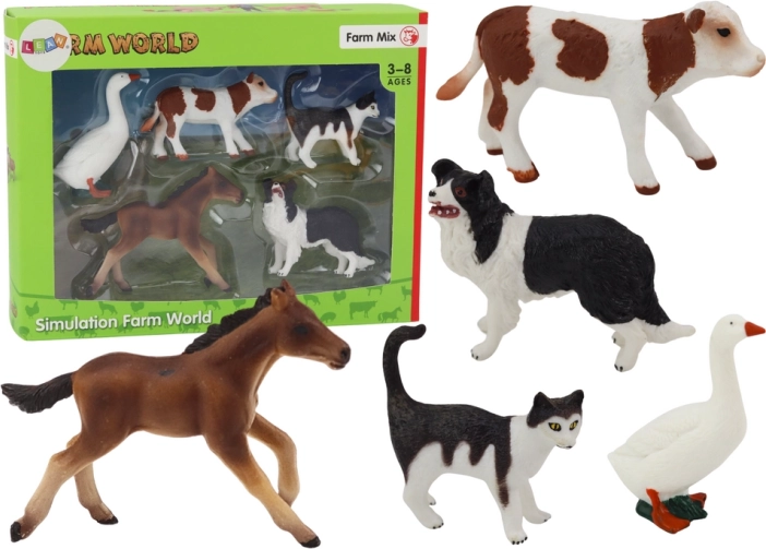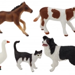 Set mit 5 Figuren von Haustieren und Bauernhoftieren: Pferd, Kuh, Katze, Gans, Hund