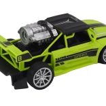 Der sportliche Look mit Spoiler und sichtbaren Motordetails wird durch helle Lichteffekte ergänzt. Das Auto sieht aus und fährt wie ein echter Rennwagen.