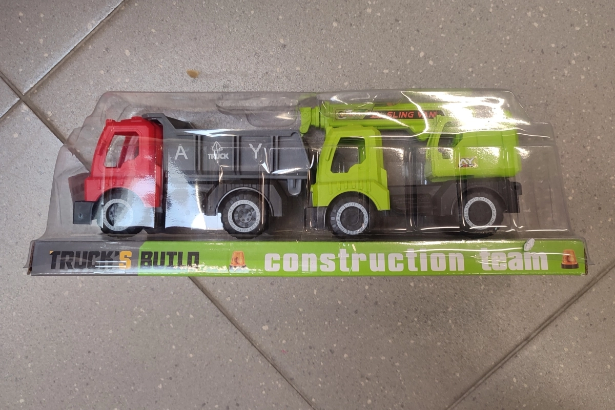 Bausatz mit Bauwagen für kleine Baumeister ist ein ideales Spielzeug zur Förderung der motorischen Fähigkeiten. Enthält einen Lader und Kran aus hochwertigem Kunststoff.