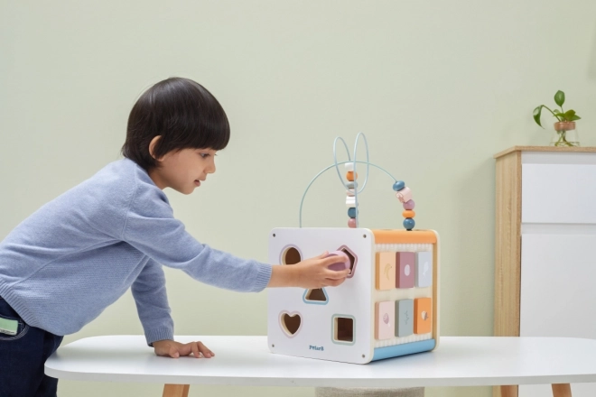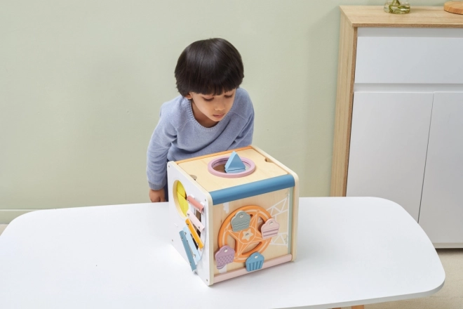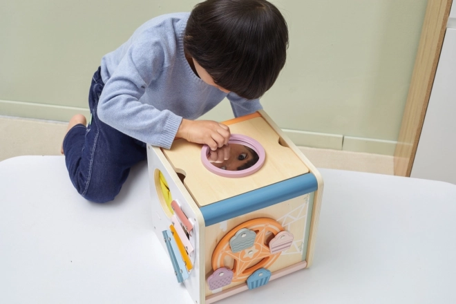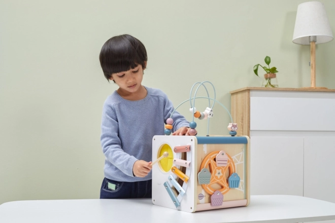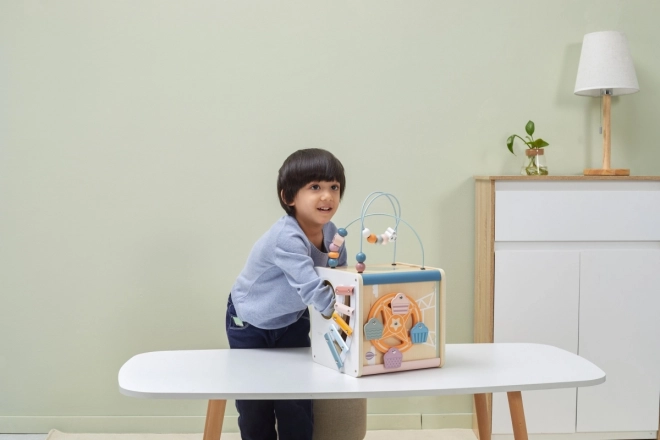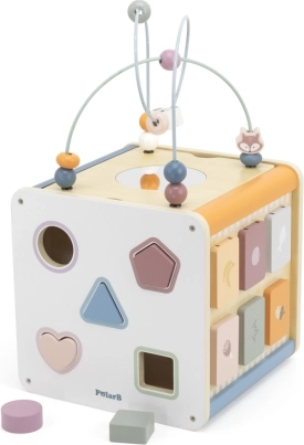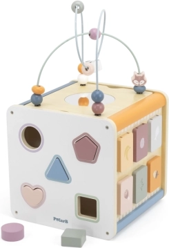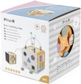 Viga PolarB Lernwürfel 8-in-1 bietet acht verschiedene Aktivitäten, die verschiedene Aspekte der kindlichen Entwicklung abdecken. Das Spielzeug beinhaltet: