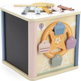Enthält einen Formensortierer, eine motorische Schleife, einen Spiegel, ein Xylophon, eine Kreidetafel und mehr.
