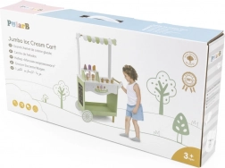 Großer hölzerner Eisladen ist ideal für Kinder, die es lieben, Verkäufer zu spielen. Der Stand ist mit imitierten Eissorten und Waffelhörnchen ausgestattet, was die Kreativität und Motorik-Entwicklung fördert.