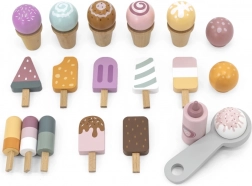 Der Stand enthält verschiedene Arten von hölzernen Eissorten, die es Kindern ermöglichen, ihre eigenen Eiskombinationen zu kreieren.