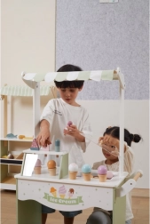 Begeben Sie sich auf eine Fantasiereise mit unserem hölzernen Eisladen für Kinder. Dieser bunte Stand umfasst eine breite Palette von hölzernen Eissorten und Zubehör, die Kinder für lange Stunden unterhält: