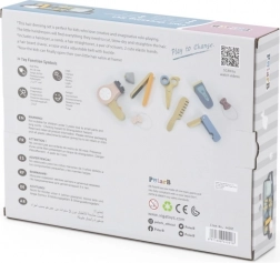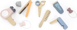 Dank verschiedener Holzwerkzeuge wie Schere, Kamm und Föhn bietet dieses Set alles, was für kreatives Rollenspiel als Friseur benötigt wird.