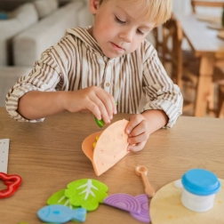 Kinder lernen Zutaten zu erkennen, trainieren die Augen-Hand-Koordination und entwickeln soziale Fähigkeiten beim gemeinsamen „Kochen“ mit Familie und Freunden.