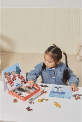 Dieses kreative Set bringt das beliebte magnetische Anziehspiel aus Holz mit dem Motiv einer Bärenfamilie. Kinder können verschiedene Outfits und Gesichtsausdrücke kombinieren, Berufe und Alltagssituationen ausprobieren und eigene Geschichten erfinden. 54 magnetische Teile bieten viele Kombinationen für stundenlangen Spielspaß.