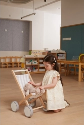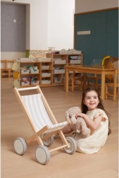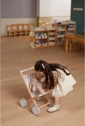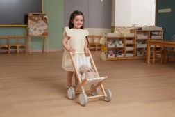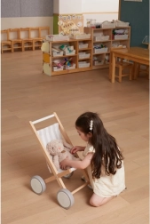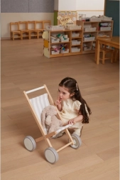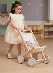 Der Puppenwagen aus Holz ist ein zeitloses Spielzeug, das Rollenspiel, Fürsorge und tägliche Bewegung fördert. Die natürliche Holzkonstruktion sorgt für Stabilität und Haltbarkeit, während der Textilsitz Puppen und Lieblingskuscheltiere bequem mitnimmt.