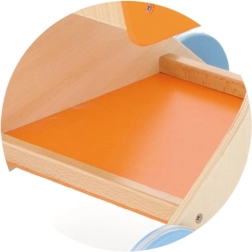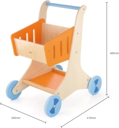 Die durchdachten Maße von ca. 41,8 × 48 × 30 cm ermöglichen bequemes Schieben und bieten viel Platz im Korb. Die hochwertige Verarbeitung aus Naturholz in Kombination mit kräftigen Farben schärft die Sinne und macht den Wagen zu einem attraktiven Accessoire fürs Kinderzimmer.