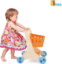 Schenken Sie Kindern Freude am Entdecken mit diesem Holzeinkaufswagen – perfekt für das Spiel „Laden“ oder zum Transport geliebter Spielsachen. Dank des robusten Holzrahmens, des bequemen Griffs und der vier leicht laufenden Räder ist der Wagen stabil und auch für die Kleinsten gut zu manövrieren.