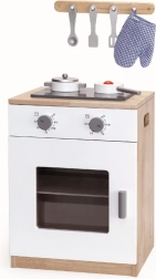 Schenken Sie Kindern ihre eigene kleine Küchenecke, in der sie das Kochen wie die Großen nachahmen können. Dieser hochwertige Holzherd bietet zwei Kochplatten, drehbare Bedienknöpfe und einen Backofen mit transparenter Tür für ein noch realistischeres Spielerlebnis. Über der Kochfläche befindet sich eine praktische Leiste zum Aufhängen von Utensilien und Topfhandschuh.