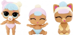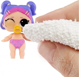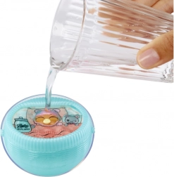 Jede L.O.L. SURPRISE!-Kugel verbirgt Babys, die „tief schlafen“ im Bettchen. Gieße einfach etwas Wasser dazu und das Bettchen löst sich magisch auf – sofort siehst du, wie viele Freunde sich darin versteckt haben. Du kannst Zwillinge, Drillinge oder sogar eine Kombination mit einem Haustier entdecken. Anschließend wische den Babys sanft die Augen mit Wasser ab und enthülle ihre geheime Augenfarbe.