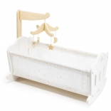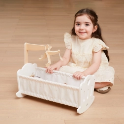 Das hängende Holz-Mobile bietet visuelle Reize und verleiht der Wiege eine zauberhafte Atmosphäre für beruhigende Einschlafrituale der Puppe.