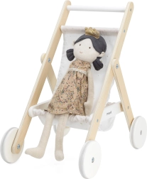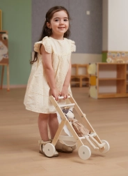 Schenken Sie Kindern ein realistisches Eltern-Rollenspiel mit einem eleganten Holzpuppenwagen. Zeitloses Design, hochwertige Materialien und eine sichere Verarbeitung sorgen dafür, dass jeder „Ausflug“ mit der Puppe bequem und leise ist. Gummilaufflächen an den Rädern reduzieren Bodengeräusche und erhöhen die Stabilität bei den ersten Schritten.