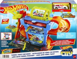 Die Hot Wheels City Color Shifters Autowaschanlage mit drehbarem Tunnel bringt actionreiche Farbwechsel und interaktive Elemente ins Spiel. Kinder können ihr Auto mit dem manuell bedienbaren Aufzug ins Obergeschoss befördern und beobachten, wie sich sein Look im warmen Wasser sofort verändert. Anschließend geht es über die Rampe durch die Schaumbürste, und im „Detailing“ wird alles bis zum letzten spaßigen Schritt perfektioniert.