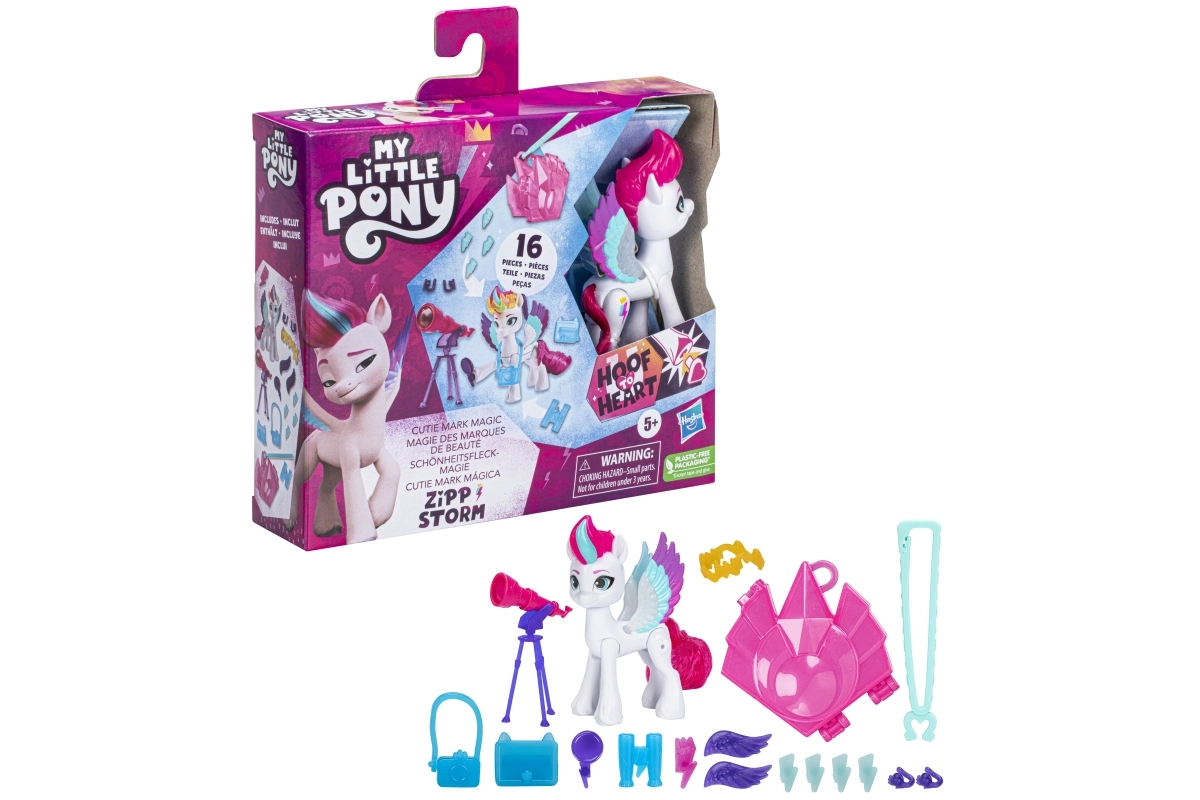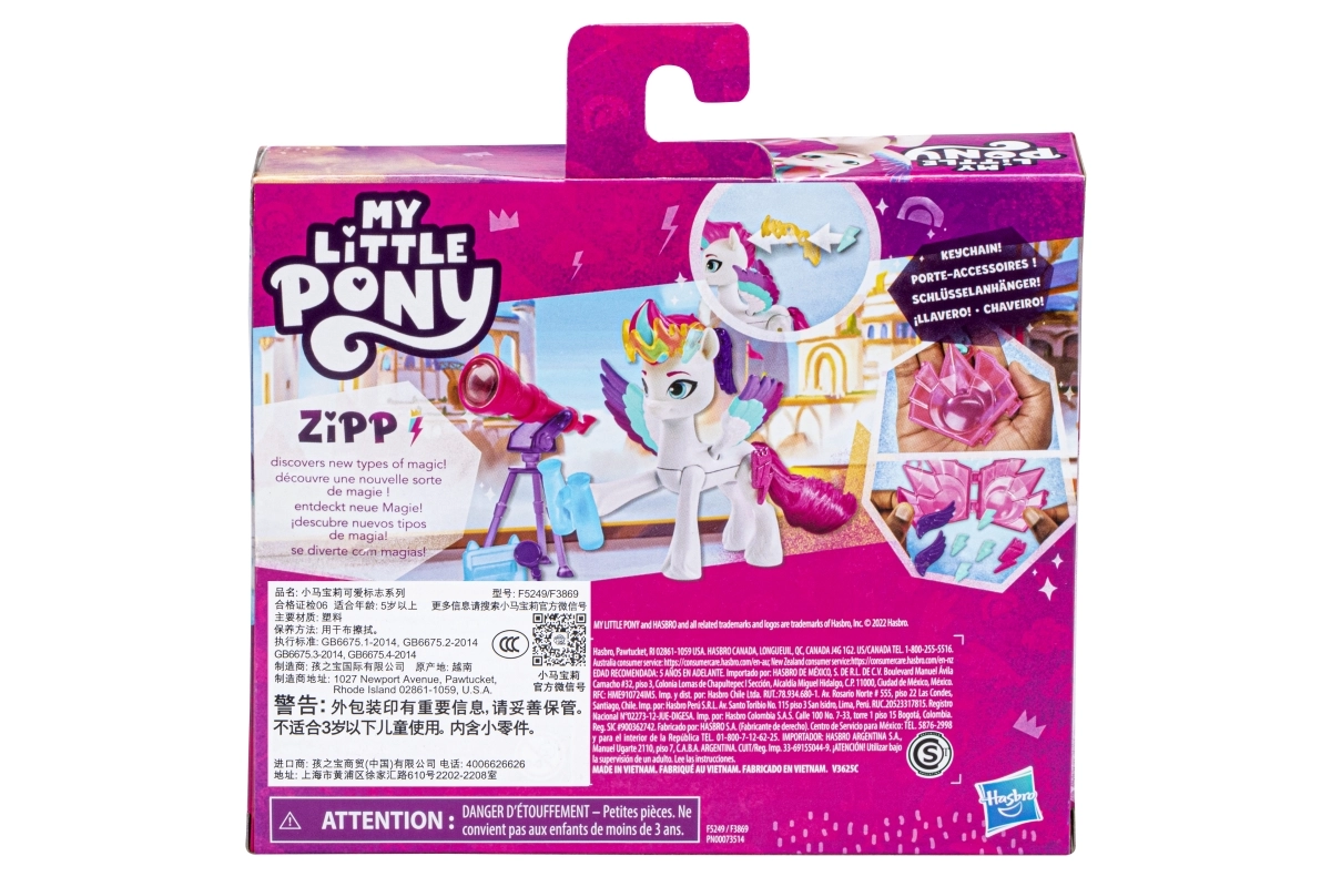 Entdecken Sie die mutige und athletische Prinzessin Zipp aus dem beliebten Film My Little Pony: Eine neue Generation und der Serie My Little Pony: Make Your Mark. Diese bezaubernde Zipp-Figur ist beweglich und misst 3 Zoll.