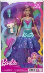 Die BARBIE Puppe Malibu Roberts bringt märchenhafte Abenteuer, inspiriert von der Serie Ein Hauch von Magie. Sie glänzt in einem mehrlagigen Kleid mit einem glitzernden Tüllrock, übersät mit Sternen, zarten Flügelakzenten am Ausschnitt und schimmernden Manschetten an den Armen, die ihren zauberhaften Feen-Stil vollenden.