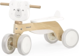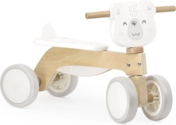 Die robuste Holzkonstruktion aus hochwertigem Material wird durch eine hintere Sitzstütze ergänzt, die ein Nach-hinten-Rutschen verhindert. Der ergonomisch geformte Griff mit Bärenmotiv unterstützt einen natürlichen Griff und eine sichere Führung.