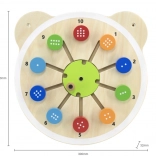 Dieses Holz-Wandspiel in Form eines Bärenkopfes bietet Kindern eine spielerische Möglichkeit, Zahlen und Farben zu lernen. Durch das Verschieben der runden Plättchen mit Punkten zu den passenden Ziffern üben Kinder Zählen, visuelle Differenzierung und Hand-Auge-Koordination. Die Tafel besteht aus lackiertem Holz und ist mit sicheren, ungiftigen Farben in lebendigen Tönen versehen, die sofort ins Auge fallen.