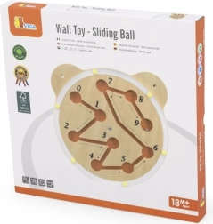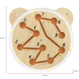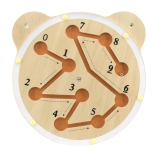 Diese wandmontierte Lern-Tafel von Viga in Form eines niedlichen Bärenkopfs verbindet Spiel und Lernen. Mit der drehbaren Platte wird die Stahlkugel durch die Rillen geführt, sodass sie nacheinander jede Ziffer von 0 bis 9 erreicht. Kinder trainieren spielerisch Zählen, Geduld und Problemlösung.