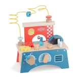Spezielle Elemente wie ein Hämmerchen und ein Kugellabyrinth fördern die Koordination und Geschicklichkeit der Feinmotorik.