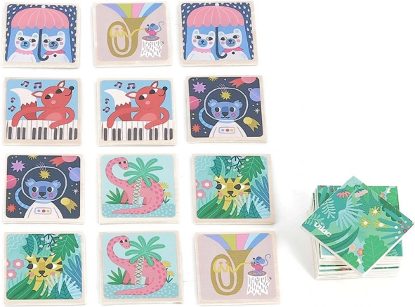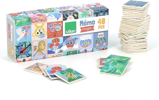 Das Vilac Holz-Memo ist ideal für Kinder, die farbenfrohe Illustrationen und unterhaltsame Spiele lieben. Diese Spielkarten, perfekt für kleine Kinderhände angepasst, helfen, Wortschatz, Gedächtnis und Beobachtungssinn zu entwickeln.