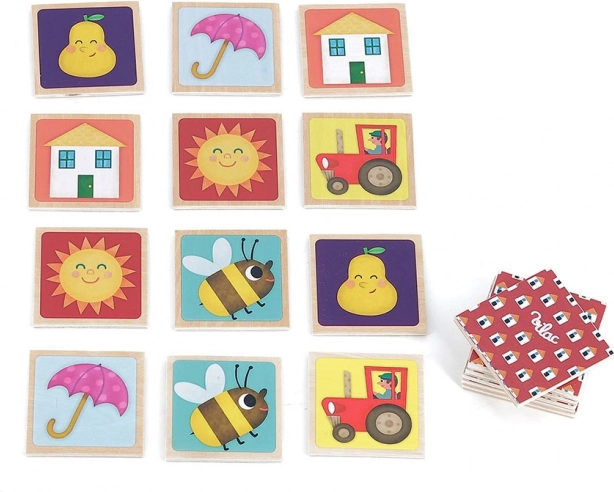 Entdecken Sie die Schönheit des originalen Holz-Memorys mit Tiermotiven auf dem Bauernhof. Dieses Memory bietet 48 hölzerne Spielsteine, die in der Größe auf kleine Kinderhände abgestimmt sind, aus strapazierfähigem Holz gefertigt und mit hochwertigem Druck versehen.