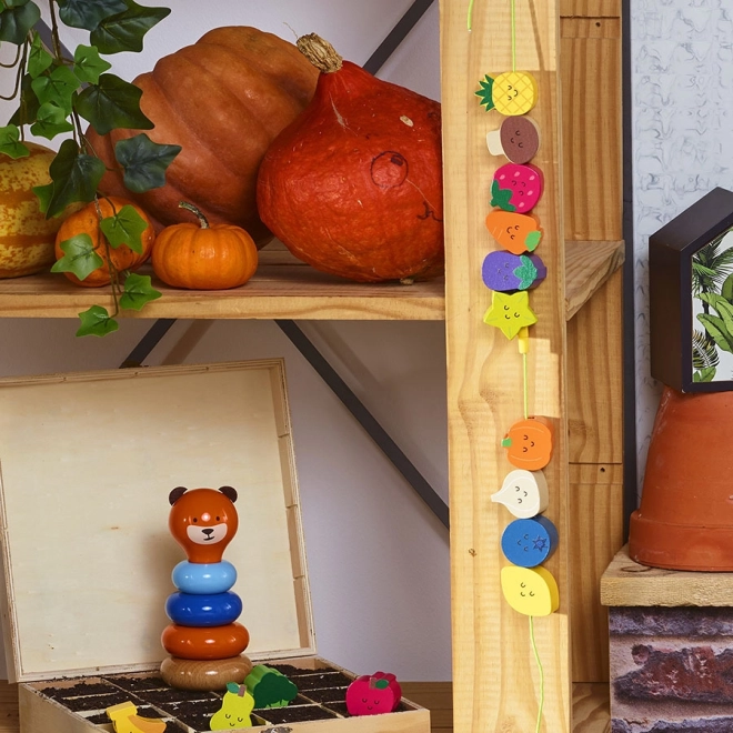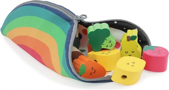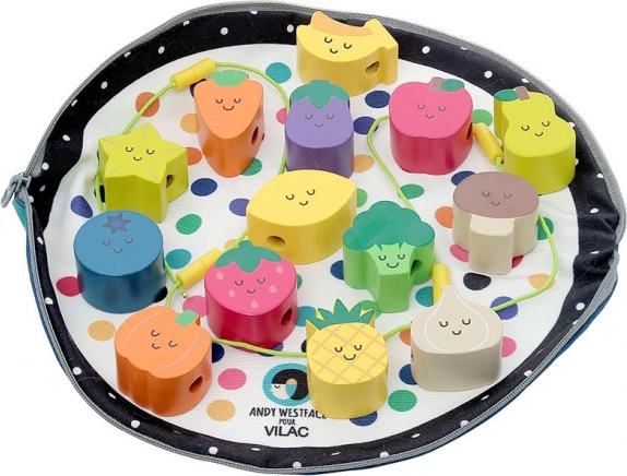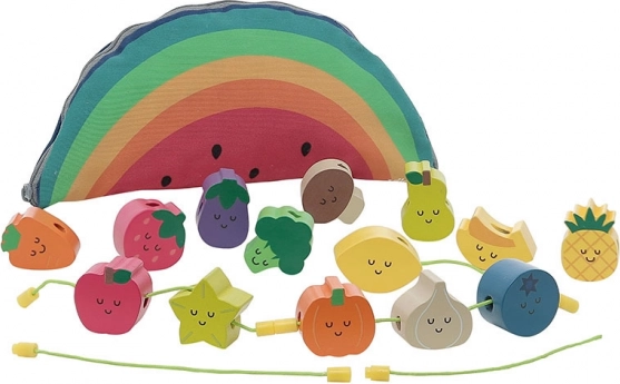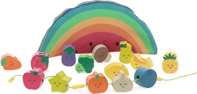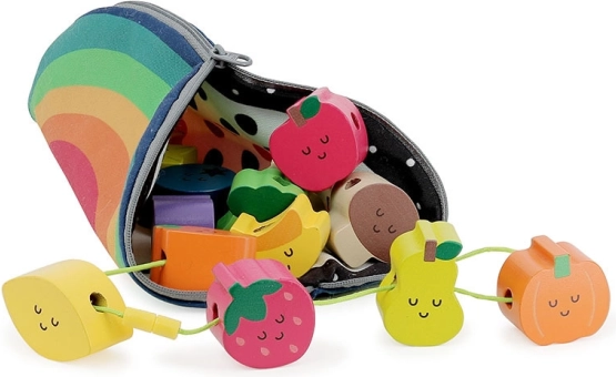 Holzperlen zum Auffädeln, ideal für kleine Kinder ab 18 Monaten. Dieses Spielzeug hilft Kindern, ihre Feinmotorik und Koordination zu entwickeln. Wunderschöne Illustrationen von Andy Westface machen das Auffädeln dieser Perlen unterhaltsam. Kinder lernen Farben und Formen zu erkennen und bereichern gleichzeitig ihren Wortschatz.