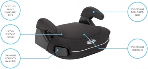 Leichter und praktischer Kindersitz von der Marke Graco, für Kinder im Alter von etwa 6 bis 12 Jahren konzipiert, bietet höchste Sicherheit dank der Übereinstimmung mit der Norm R129 i-Size und gewährleistet maximalen Komfort durch weiche Polster und Armlehnen.