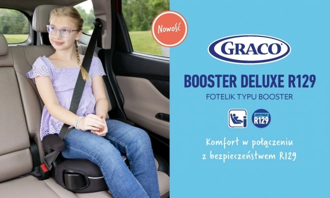 Der Graco Booster i-Size Deluxe ist für die sichere und komfortable Reise Ihres Kindes konzipiert. Dieser Kindersitz ist leicht tragbar, wiegt nur 1,4 kg, was die Verwendung in verschiedenen Fahrzeugen erleichtert. Er ist mit einer hohen Rückenlehne ausgestattet, die die Positionierung des Sicherheitsgurts optimiert, während die weiche Polsterung und die verstellbaren Lehnen Komfort bei jeder Fahrt gewährleisten.
