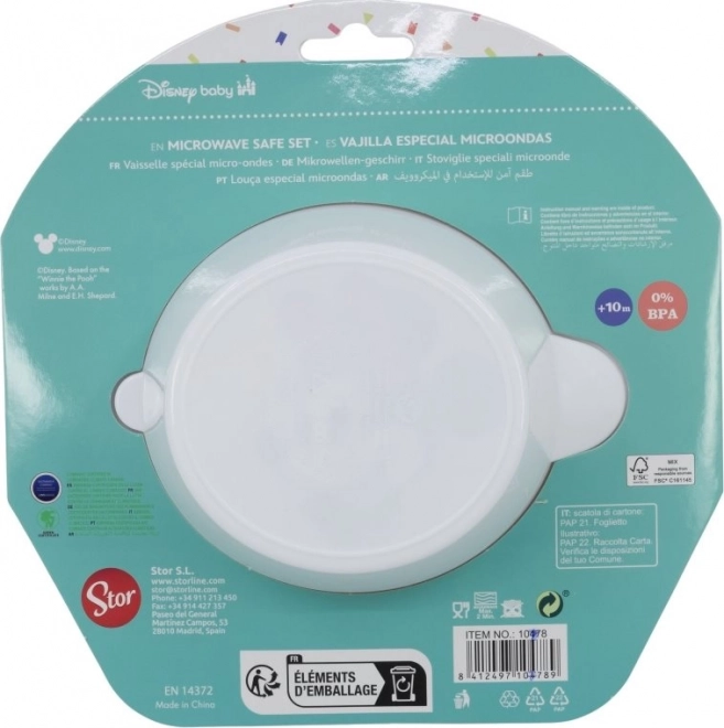 Das Set ist für die Verwendung in der Mikrowelle bis zu 2 Minuten geeignet und bietet Komfort bei der Zubereitung von Kindermahlzeiten.