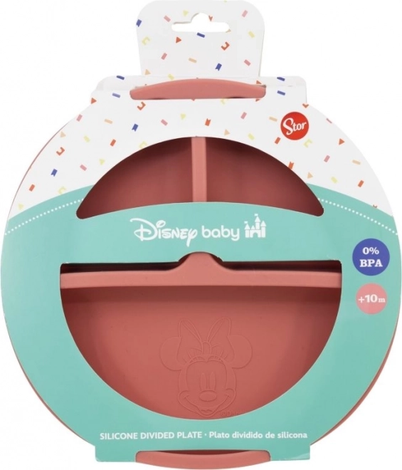 Dieser niedliche Silikonteller mit Minnie Maus-Motiv ist speziell für Kinder entworfen. Er ist weich und leicht, was ihn ideal für den Einsatz zu Hause und unterwegs macht. Hergestellt aus hochwertigem lebensmittelechtem Silikon, ist er sicher und ungiftig, ohne BPA.