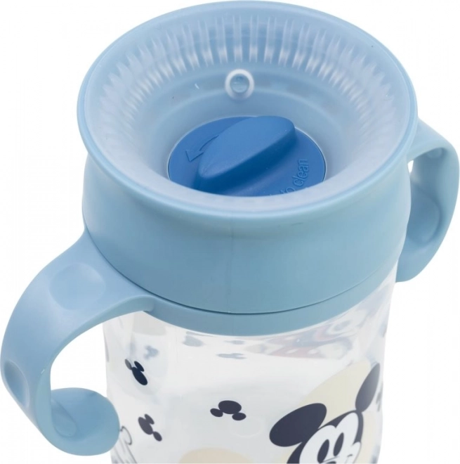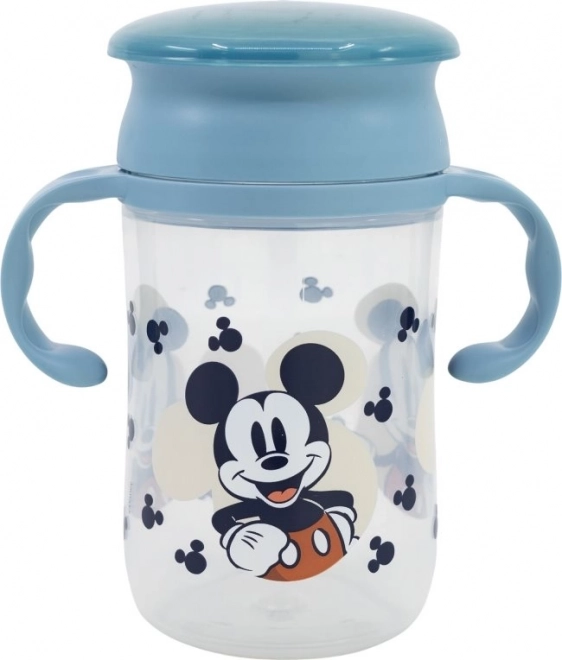 Der Becher ist mit einem Mickey Mouse-Motiv verziert, was dem Produkt ein ansprechendes Aussehen für Kinder verleiht.