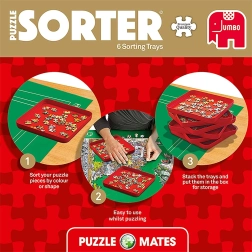 Nach dem Legen stapeln Sie die Schalen einfach aufeinander – die stapelbare Konstruktion spart Platz, und den gesamten Sortierer samt Teilen können Sie wieder in die Puzzelschachtel legen. Der ideale Helfer für Einsteiger wie auch anspruchsvolle Puzzlefans.