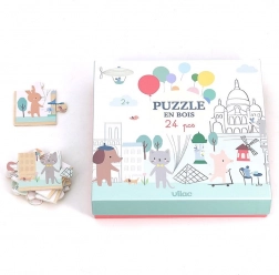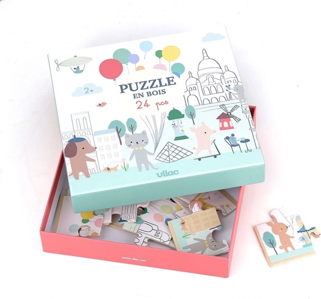 Begeben Sie sich in die malerischen Straßen von Paris und lassen Sie Kinder mit dem Panorama-Holzpuzzle von Vilac eine Welt der Fantasie entdecken. Illustrationen von Sarah Betz zeigen niedliche Tiere und Details, die Kinder auf den ersten Blick begeistern. Jedes Teil ist aus hochwertigem Holz gefertigt, hat glatte Kanten und ist für kleine Kinderhände gemacht.