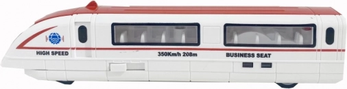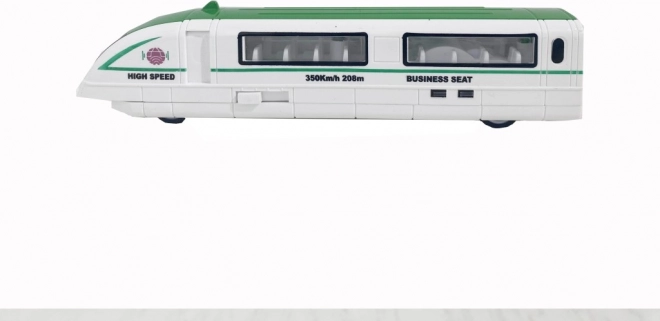 Realistische Aufschriften „High Speed“, „Business Seat“ und Zierstreifen in verschiedenen Farbvarianten unterstreichen das authentische Erscheinungsbild. Das Modell eignet sich für Kinder ab 3 Jahren sowie für Liebhaber moderner Züge, die seinen Sammlerwert zu schätzen wissen.