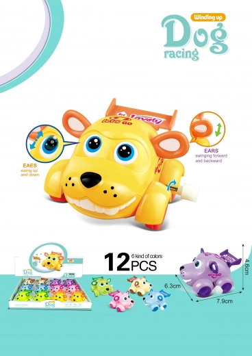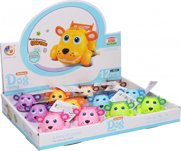 Wind-up Kunststoffhund 8 cm, 6 Farben. Tolles Spielzeug für Kinder. In der Verpackung 12 Stk.
