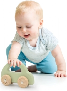 Dieses minimalistische Holzauto in sanftem Grün ist eine ausgezeichnete Wahl als erstes Spielzeug zur Förderung von Bewegung und Koordination. Dank der ergonomischen Form können kleine Hände es leicht greifen und über den Boden schieben, während die leisen Räder für eine ruhige, gleichmäßige Fahrt sorgen.