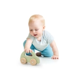 Sicherheit steht an erster Stelle: Das Auto hat abgerundete Kanten, ist aus hochwertigem Holz gefertigt und mit ungiftigen Farben lackiert. Das schlichte Pastell-Design unterstützt kreatives und fantasievolles Spiel ohne überflüssige Reize.