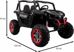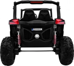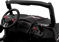 Erleben Sie Offroad-Spaß mit dem elektrischen Kinder-Buggy SuperStar 4x4 in elegantem Schwarz. Dank umschaltbarem Antrieb 2×4 / 4×4, vier 4×45 W-Motoren und großen EVA-Rädern 35 × 15 cm meistert er Unebenheiten und Gartenterrain. Die einstellbare Gewindefederung (2× vorn, 2× hinten) und die hohe Bodenfreiheit von 23 cm sorgen für komfortables Fahren.