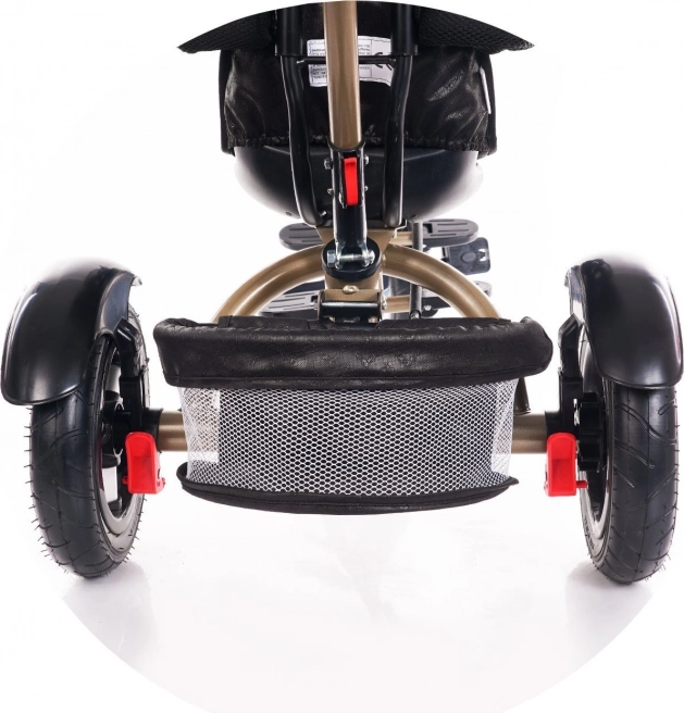 Ein geräumiger hinterer Korb und eine Tasche am Griff bieten Platz für Spielzeug, Flaschen und alles Nötige für unterwegs.