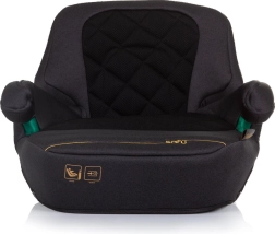 Die Installation ist schnell und unkompliziert – entweder mit ISOFIX + Fahrzeugsicherheitsgurt oder ausschließlich mit dem 3-Punkt-Gurt. Die geräumige Sitzfläche mit ergonomischer Form, weicher Polsterung und Armlehnen garantiert Komfort auch auf längeren Fahrten. Der Bezug ist abnehmbar und waschbar, sodass die Sitzerhöhung leicht sauber zu halten ist.