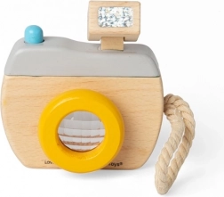 Ein markantes Objektiv, der obere „Blitz“ und eine funktionale Taste vermitteln Kindern ein authentisches Fotoerlebnis. Hochwertiges Holz und abgerundete Kanten gewährleisten sicheres Spielen ohne scharfe Teile.