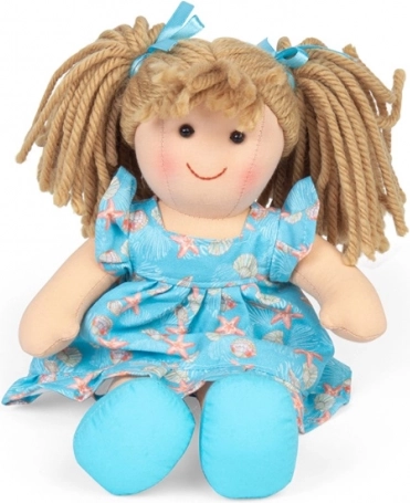 Die Stoffpuppe Maisie wurde mit Fokus auf Sicherheit, Komfort und Langlebigkeit entworfen. Dank des weichen textilen Körpers ist sie ideal zum Kuscheln und für den Alltagsspielspaß. Das fröhliche Lächeln und das blaue Kleid mit Meeresmotiven erobern Kinderherzen im Nu.