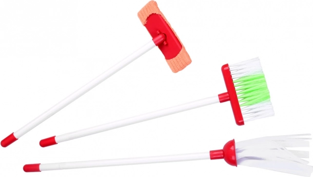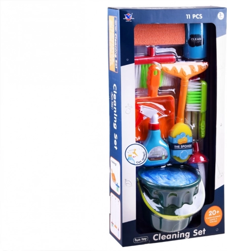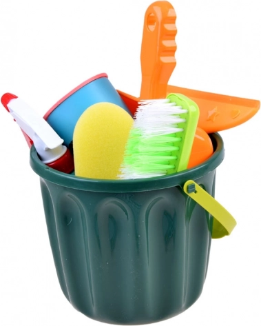 Im Set ist alles enthalten, was kleine Helfer brauchen: Eimer, Wischmopp, Handfeger, Kehrschaufel, Bürste, Schwamm und weiteres Zubehör, das die Fantasie anregt und aktives Spielen unterstützt. Fröhliche Farben und ein realistisches Aussehen ziehen die Aufmerksamkeit auf sich und laden täglich zum Spielen ein.
