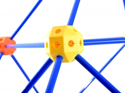 Blaue Stäbe und polygonale Verbinder aus hartem Kunststoff behalten ihre Form und sorgen auch bei größeren Projekten für Stabilität.