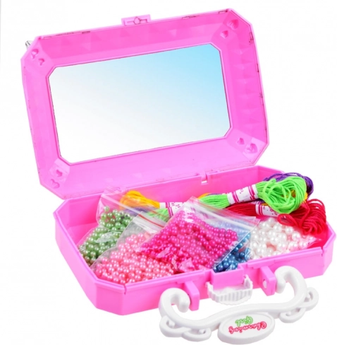 Dieses kreative Set für Kinder ist ideal für die ersten Schritte in die Welt des DIY-Schmucks. Dank des übersichtlichen Webrahmens fertigen Kinder leicht bunte Armbänder mit glänzenden Perlen, die sich als persönliches Geschenk für Mama, Schwester oder Freundin eignen. Die praktische Kunststofftruhe mit Spiegel hilft, alle Accessoires beisammenzuhalten und bietet Platz für fertige Werke.